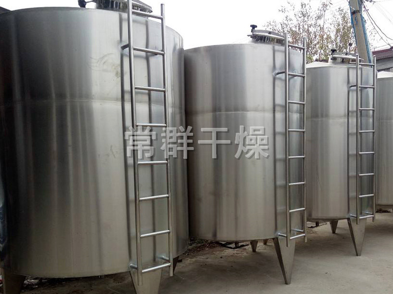 根據貯存能力不同由1000-15000L,貯罐能力在20000以上的貯罐,建議使用室外貯罐,貯罐使用SUS304不銹鋼制成,根據罐類設計要求可附帶裝置如下:攪拌器,進、出料口,人孔,溫度計,液位指示器,高、低液位報警孔,防蠅、防塵呼吸氣孔,計量器