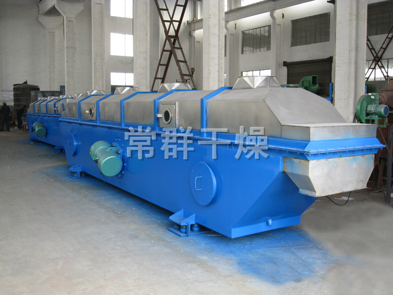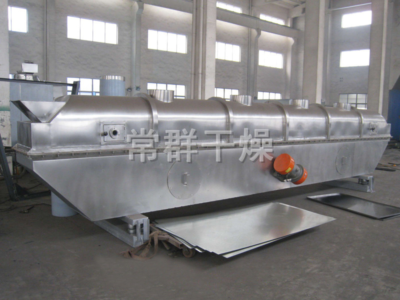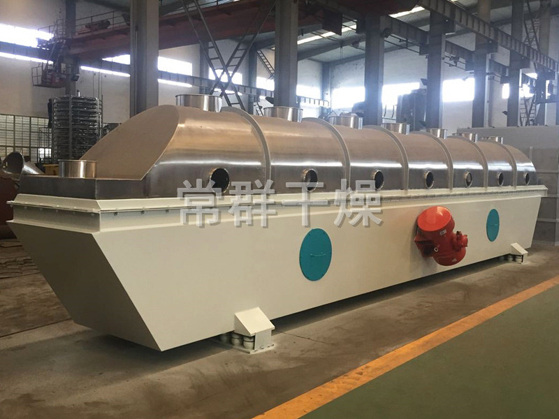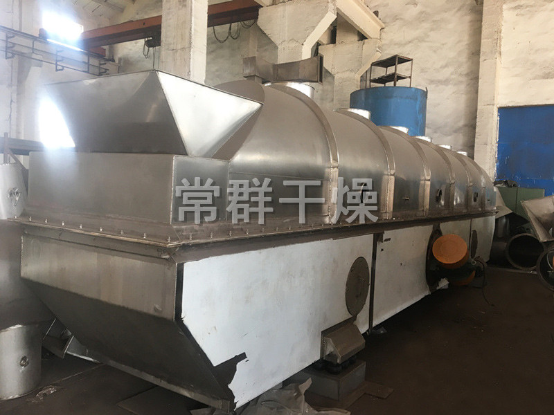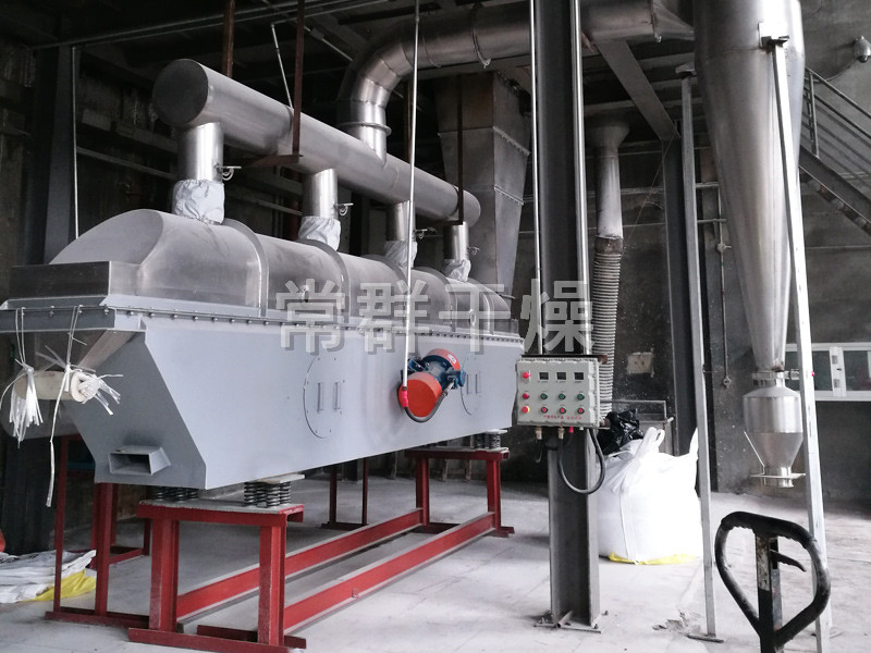 物料自進(jìn)料進(jìn)口進(jìn)入機(jī)內(nèi),在振動(dòng)力作用下,物料沿水平面流化床拋擲,向前連續(xù)運(yùn)動(dòng),熱風(fēng)向上穿過(guò)流化床同濕物料換熱后,濕空氣經(jīng)旋風(fēng)分離器除塵后由排風(fēng)1:3排出,干燥物料由排料進(jìn)口排出。