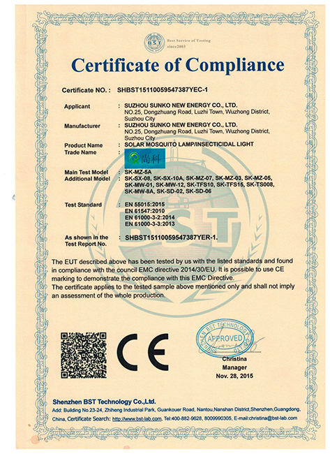 尚科滅蚊燈CE標(biāo)準(zhǔn)認(rèn)證