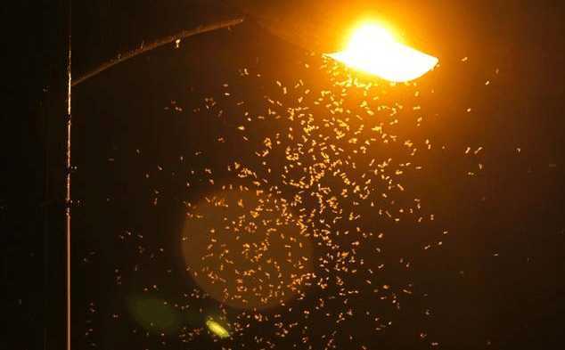 2、滅蚊燈周圍不能有強光源照射,否則會影響誘蚊效果??梢钥匆幌孪旅孢@張圖,即便是普通的路燈,也能夠吸引很多蚊蟲過來。如此一來,室外滅蚊燈能夠吸引到的蚊蟲就被“分流”了。